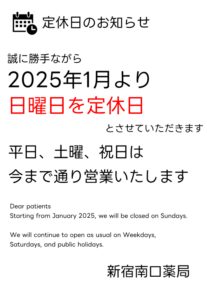年末年始の営業時間はわかり次第、LINEとホームページ、店頭掲示でお知らせいたします。